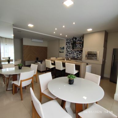 Empreendimento conta com piscina, salão de festas, sala de jogos, espaço kids e cinema.